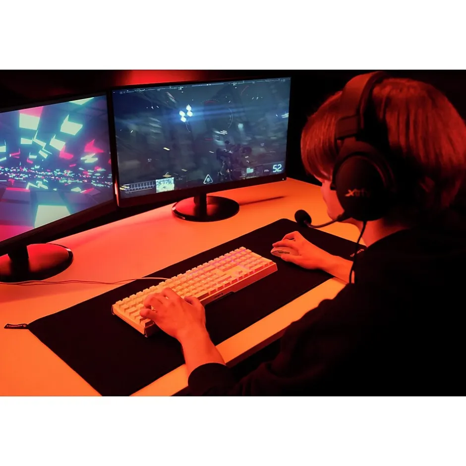 - Durable keycaps and smooth MX Red switches for a long-lasting, responsive gaming experience.