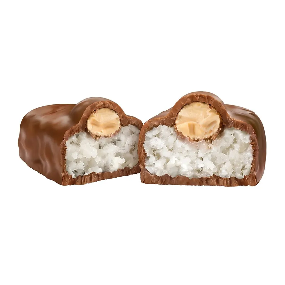 - A delicious combination of coconut and crunchy almonds covered in milk chocolate