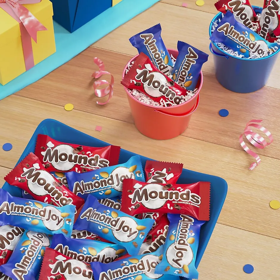 This ALMOND JOY and MOUNDS bulk assorted candy bag features two classic coconut candy bars with unmatched tropical flavor. ALMOND JOY candy bars consist of sweet coconut covered in rich chocolate with a crunchy almond in each bar. MOUNDS chocolate candy bars are full of the same sweet coconut but wrapped in delectable dark chocolate.