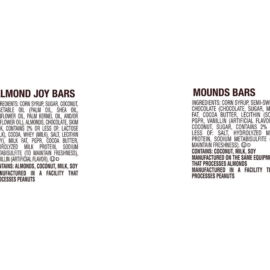| Type of Chocolate Actual manufacturer name for flavor | Mounds & Almond Joy |