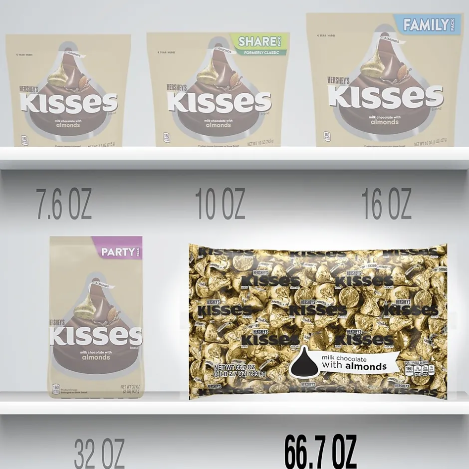 Keep a stock of chocolate on hand for special events or to hand out to guests. These individually wrapped candies are easy to distribute in snack trays, treat jars and loot bags. Enjoy sharing this 66.7-ounce bulk pack of Hershey’s KISSES almond chocolates with a large group during meetings, events or break times.