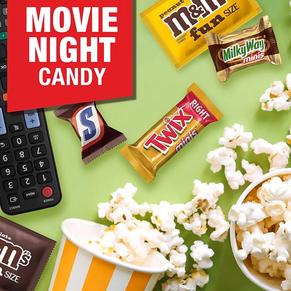 - Clock in and stock the office closet with this delicious fun size and mini assortment of M&M’S Milk Chocolate, M&M’S Peanut, SNICKERS, TWIX, and MILKY WAY chocolates