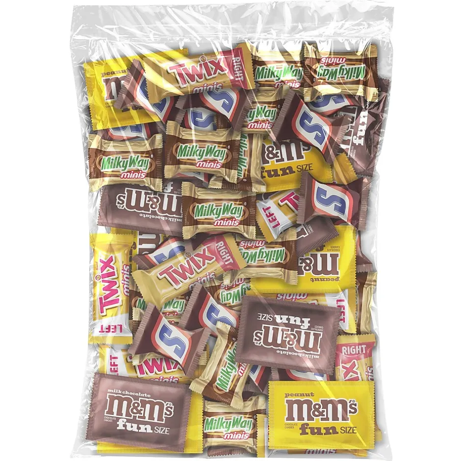 - Contains one (1) 62.6-ounce bulk bag filled with fun size and mini SNICKERS, M&M’S, MILKY WAY and TWIX Chocolate Candy