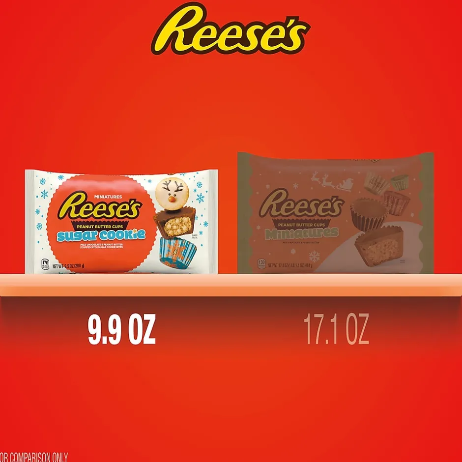 - Contains one (1) 9.9-ounce bag of REESE’S Miniatures Sugar Cookie Milk Chocolate Peanut Butter Cups Candy