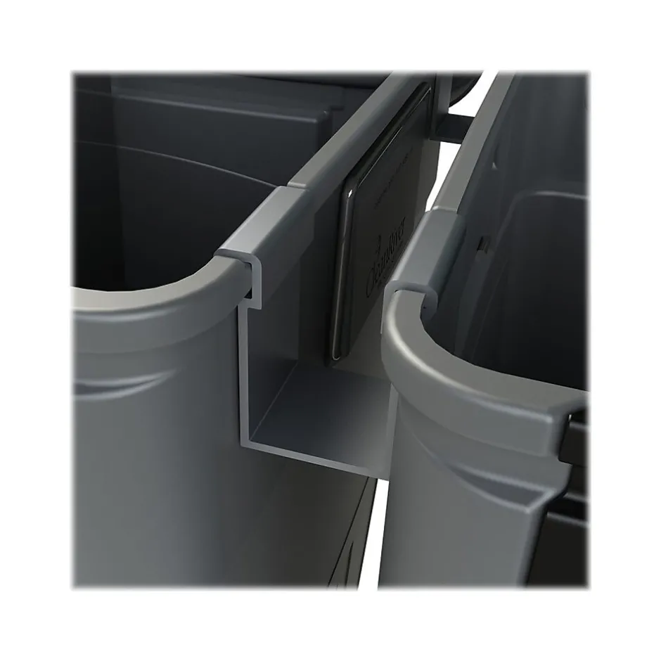 Collect up to three different streams of waste and recycling in CleanRiver Flex E 50 gal. bins that change when you need them to. Go from single-stream to double-stream to multi-stream in a snap, no tools required. Transition technology allows you to add or remove streams in a snap. Innovative top plates snap in place with no tools required. So you have peace of mind that your bin will change as your recycling program changes. This dual-stream recycling station is made of 55% recycled high-density polyethylene (HDPE).