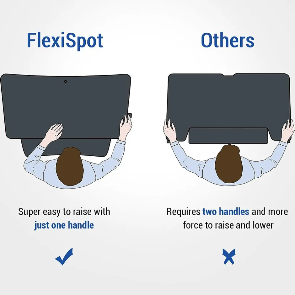 FLEXISPOT desktop risers fit in Most Standard Cubicle Corners and offer deeper & larger work surface, it provides enough space to put your monitor at a comfortable reading distance. Straight up and down movement allows the workstation to smoothly adjust for sitting or standing with just a light squeeze of the handles. Our workstation rises and folds vertically, within its own footprint. There’s no need to make spatial accommodations, as may be required in comparable products. 12 height adjustment levels between sitting and standing throughout the day, support a better posture and healthy wrist and arm positions. The spacious keyboard tray offers plenty of room for using both your keyboard and mouse. Easily remove it at any time as desired. FlexiSpot workstation has undergone extensive testing for balance, stability, and movementincluding a fatigue test of 6,000 height adjustments.