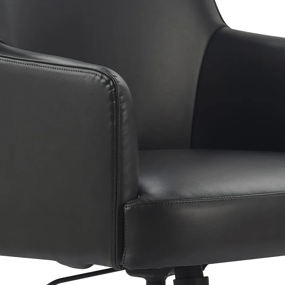 - Upholstered in executive-level bonded leather in charcoal color