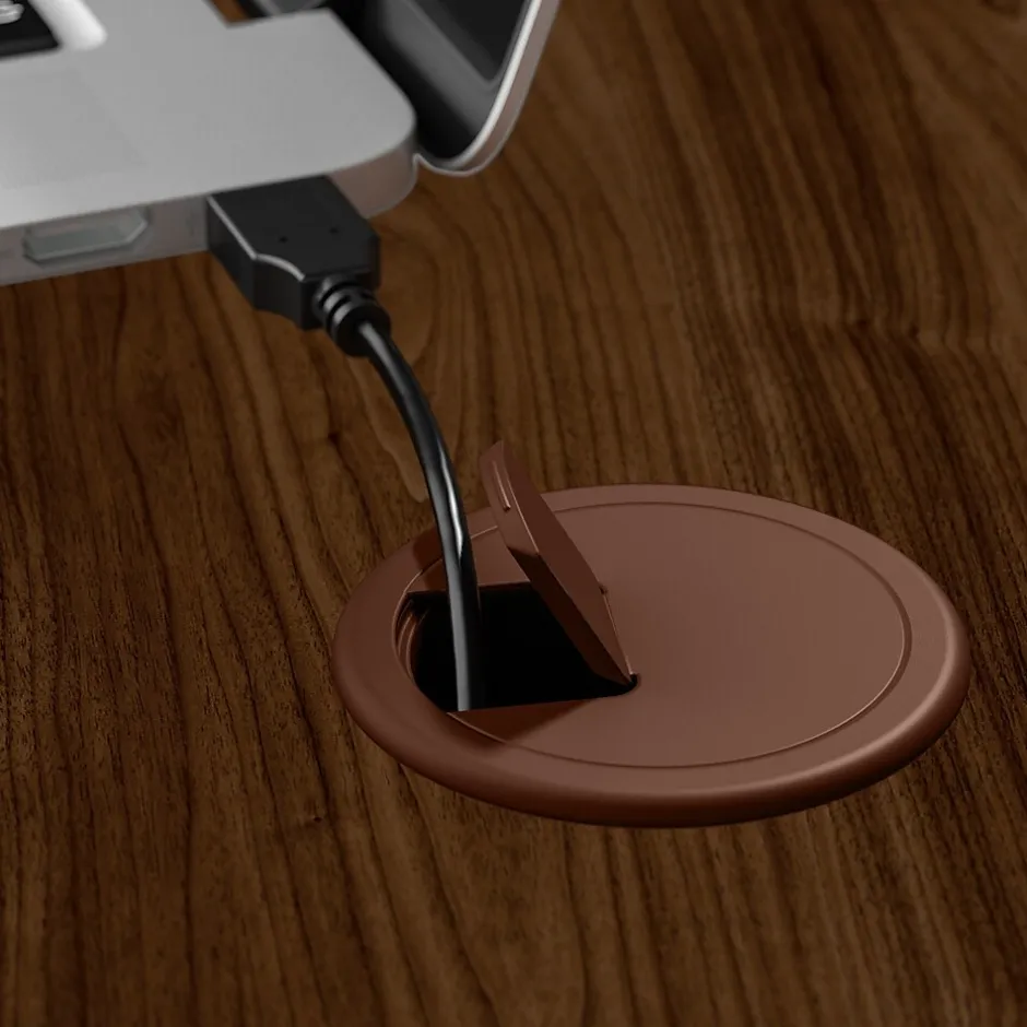 - Corner desk surface includes built-in wire management and a 4-port USB hub for connecting electronic devices