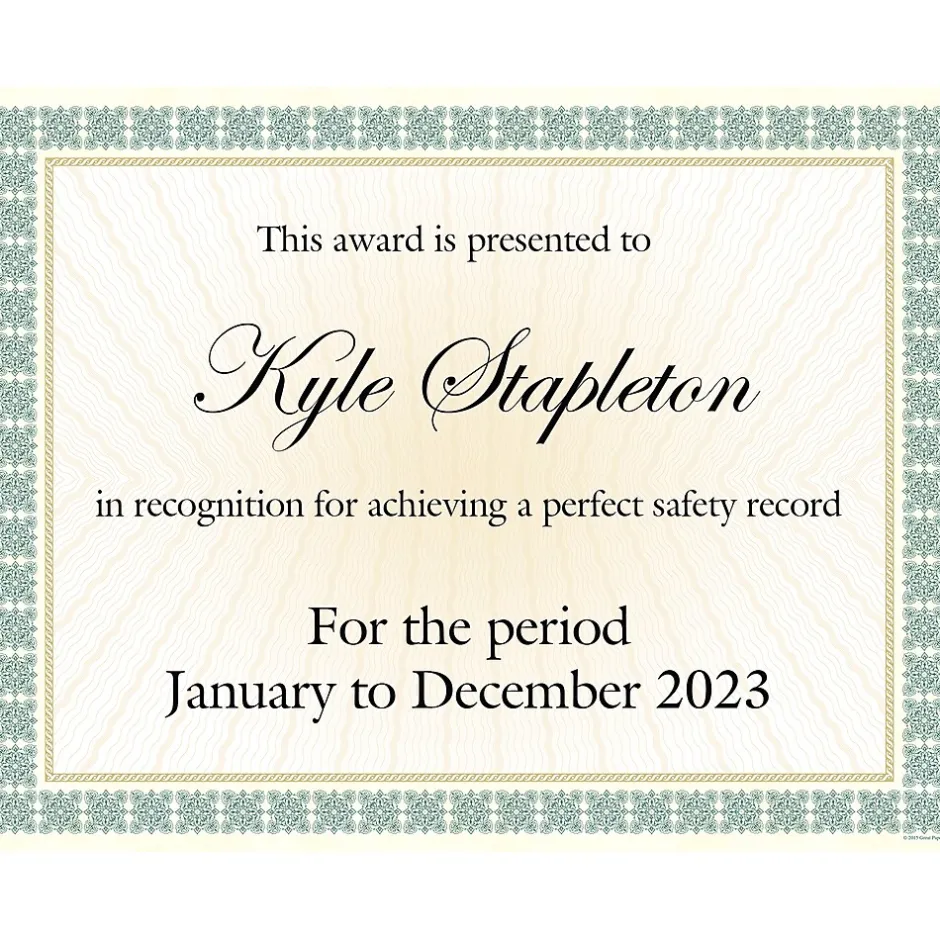 Great PapersĀ® Westminster green foil certificate is acid and lignin free. Certificate measures 8.5″ x 11″ and is compatible with laser, inkjet printers, sold as 15 per pack.