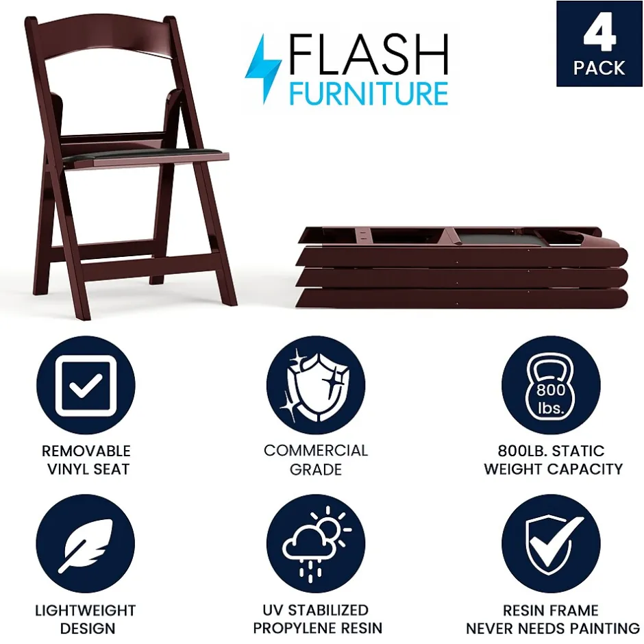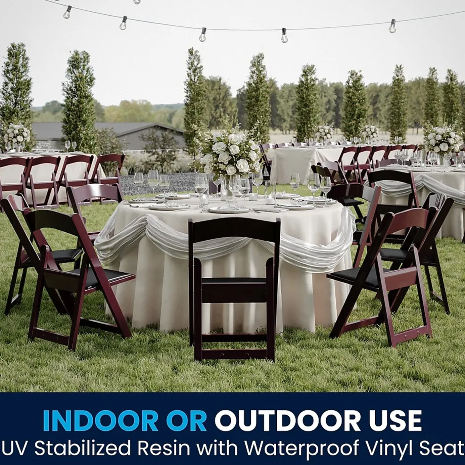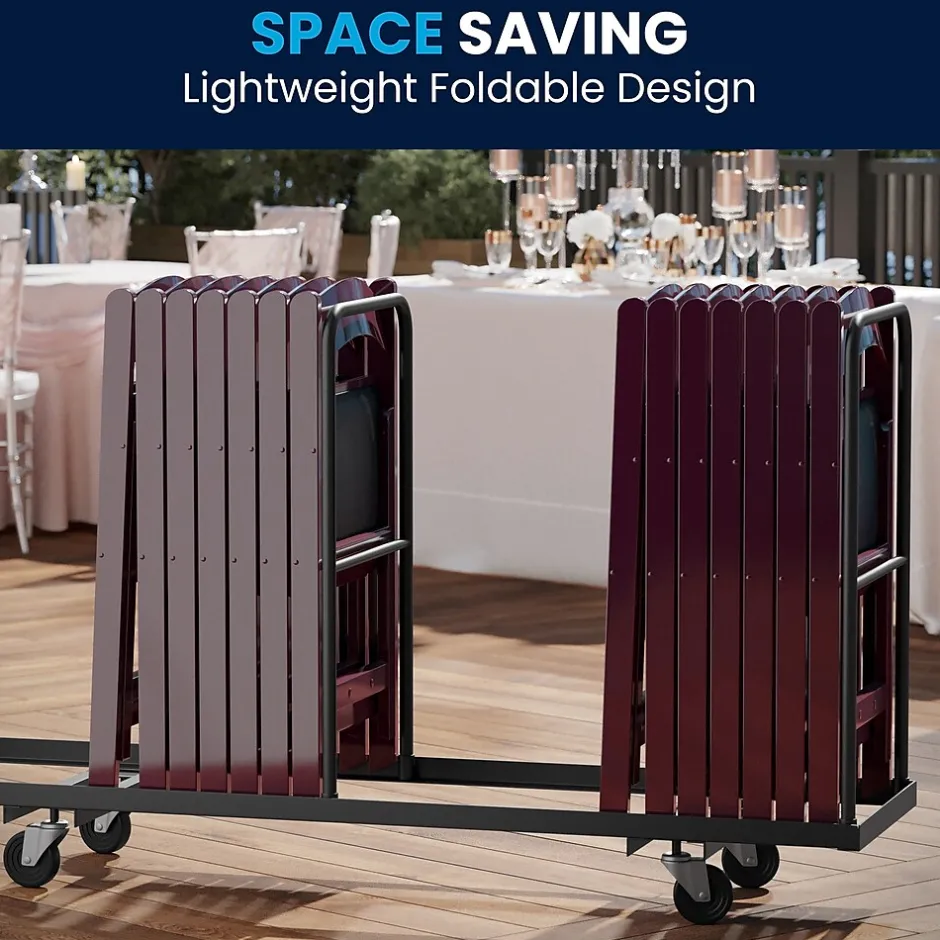 Commercial-grade resin folding chair with an upscale design making it the perfect special event chair. This product is engineered and built with premium materials that will withstand heavy duty use for event, business and home usage. These folding chairs will stack easily and feature a washable vinyl seat that can be replaced if damaged. Choose the color option that would best pair with your event needs. This is a commercial-grade, on-demand seating solution ideal for more formal occasions such as weddings, catered events or anniversary parties. Folding Chair Highlights: – Ready-to-use with no assembly required – Hassle free stackable storage – Replaceable seat prolongs the life of the chair – Floor caps to prevent surface and flooring damage – 1000LB weight capacity – These low-maintenance party event chairs wipe down easily after luncheons and stack neatly for storage or floor maintenance. Make a smart investment by purchasing multiple resin folding chairs for your rental business, banquet facility or event venue. Purchase our folding chair dolly for quick and easy set up and take down.