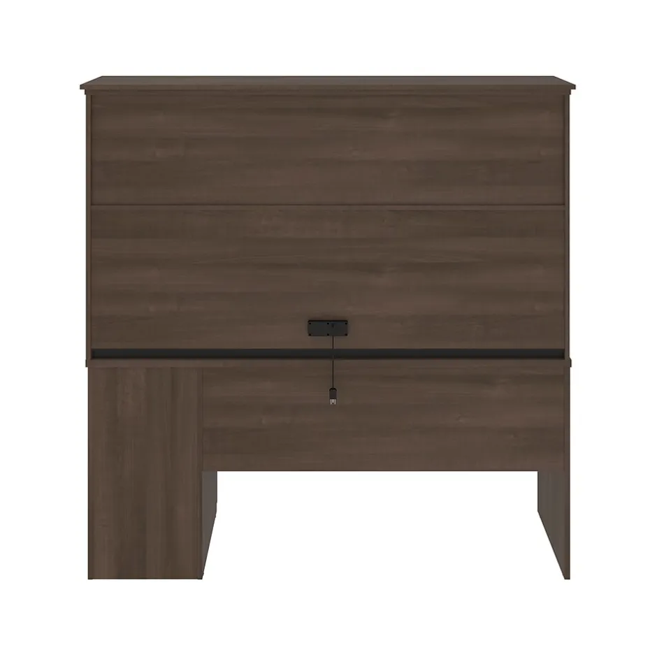 - Hutch has one closed and two open storage areas to store office supplies, one power bar with two power outlets and two USB ports to charge electronics, and a rubber wire management strip is included to hide cables and wires