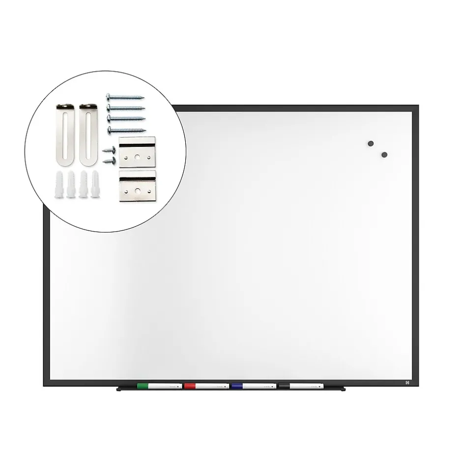 - Includes whiteboard, mounting kit, accessory tray, and 4/pack of TRU RED™ assorted chisel tip dry erase markers