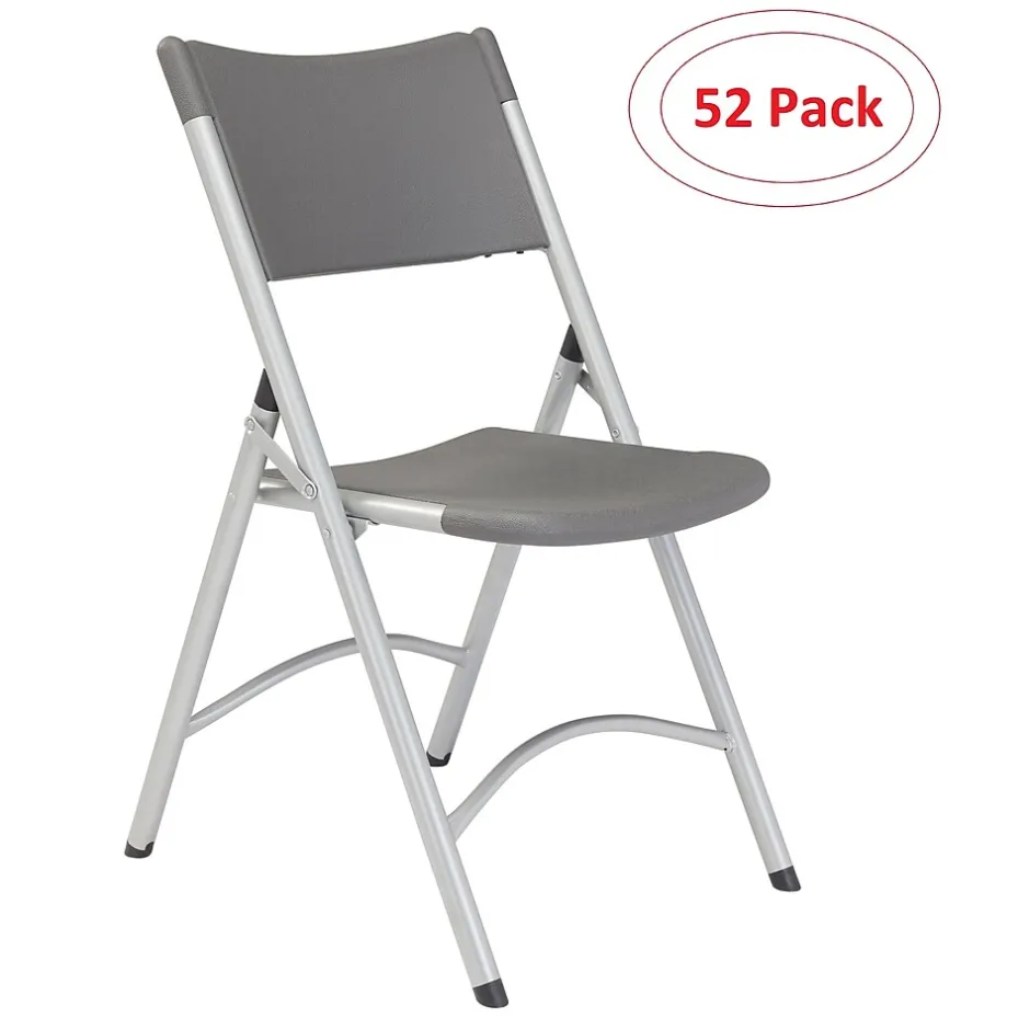 Made for true efficiency and stability, the 600 Series blow-molded, resin-plastic folding chairs feature a heavy-duty powder-coated 19-gauge tubular frame and a large contoured seat and backrest for your comfort.Two double-riveted U-braces – one in front and one in back – securely support the single-hinged legs.V-tip stability plugs provide added reinforcement at the frame’s junction and replaceable glides prevent floor damage. Lightweight for easy transport, they are stain-resistant and perfect for easy set-up and take-down, indoors or outdoors.Available in our All-American Colors.The 600 Series meets MAS Certified Green and ANSI/BIFMA standards.