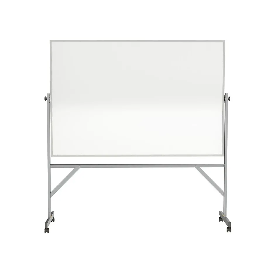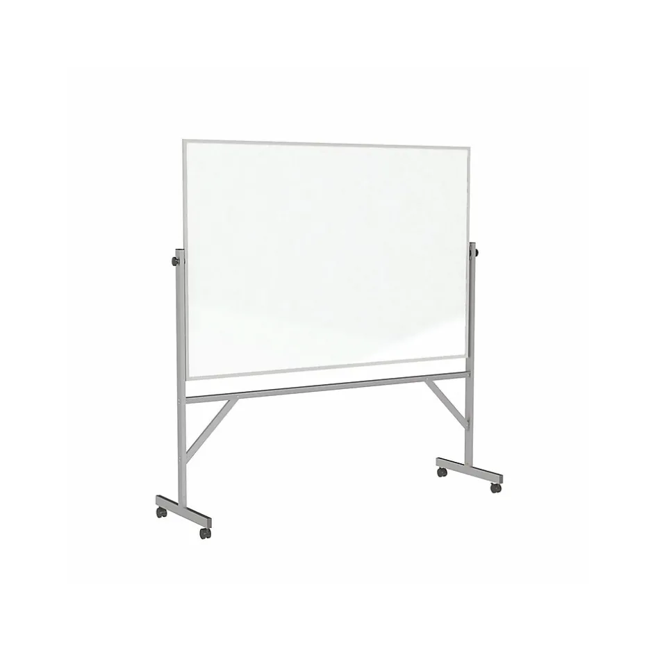 Communicate better in meetings and lectures by using this reversible whiteboard. Its porcelain surface resists scratches and stains for durability, and the reversible design doubles the usable writing surface. This Ghent magnetic whiteboard is mounted on sturdy casters for easy portability, and it locks into position for stability during use.