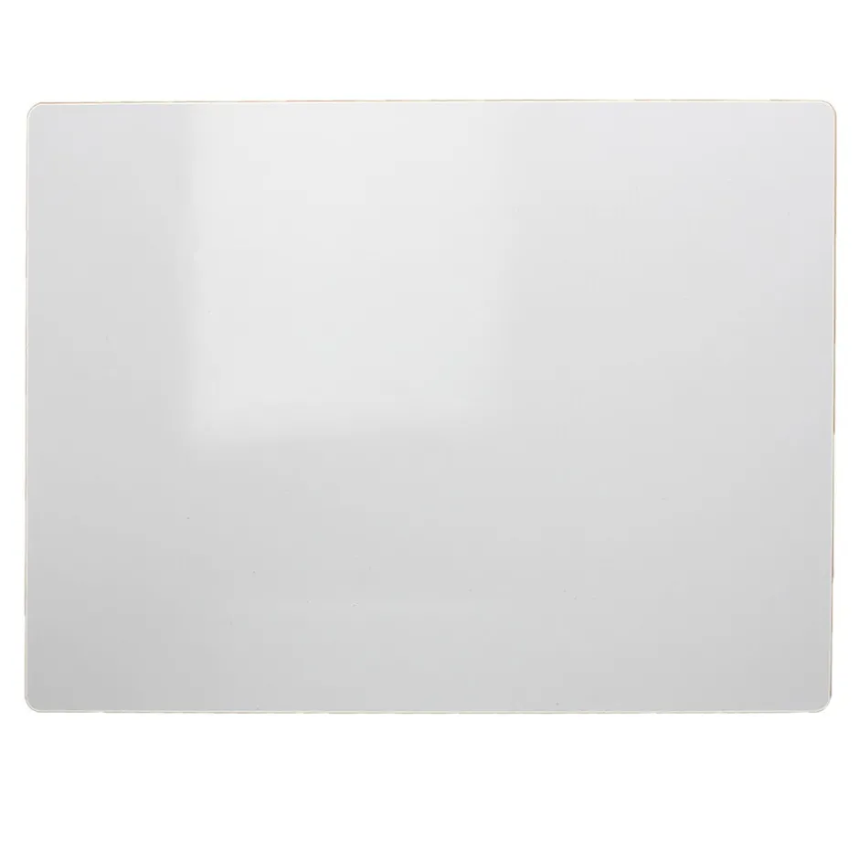 Economical, unframed mini board with a plain dry erase surface on one side is ideal for small reminders! Great for lockers or file cabinets with adhesive magnetic strips added (not included), or any time a bigger board is just too much. Quality write-and-wipe surface is non-ghosting. Hardboard backing is warp and chip resistant. Radius corners and smooth edges for comfort and safety.Measures 5″ x 7″ x 0.125″. Pack of 12 boards.
