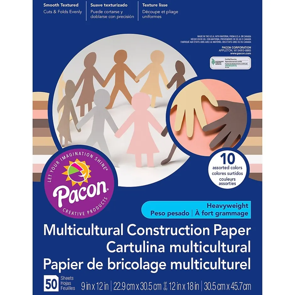 Five creative shades for multicultural curriculums. This art and craft paper reflects the rich variety of skin color found around the world. Practical all-purpose sheets with excellent strength, brightness and durability. Recyclable. Measures 12″ x 18″. Each pack includes 50 sheets. Sold as a set of 5 packs, 250 sheets total.