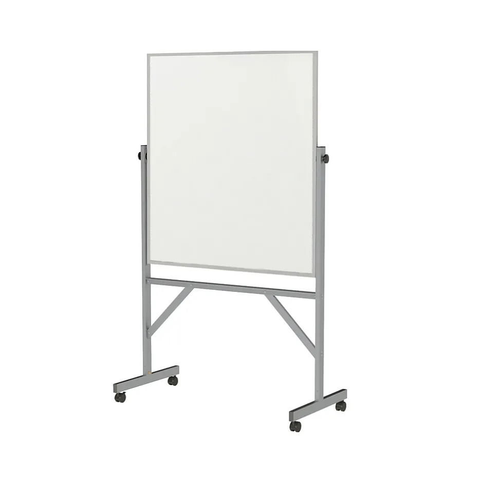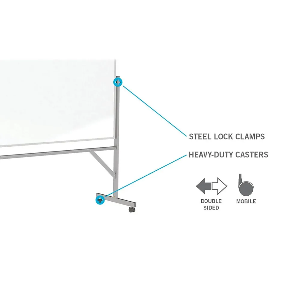 Constructed for strength and durability, Ghent’s reversible whiteboard is a versatile mobile communication tool. This double-sided board features smooth, durable whiteboard mounted to a hardboard backing to ensure stability. Its reversing mechanism is specifically designed to make flipping to the other side quick and easy. Strong steel lock clamps adjust to secure the board in any position. The portable unit features a full-length accessory tray for convenience. This board is fully mobile with added bracing on the legs for stability and security.