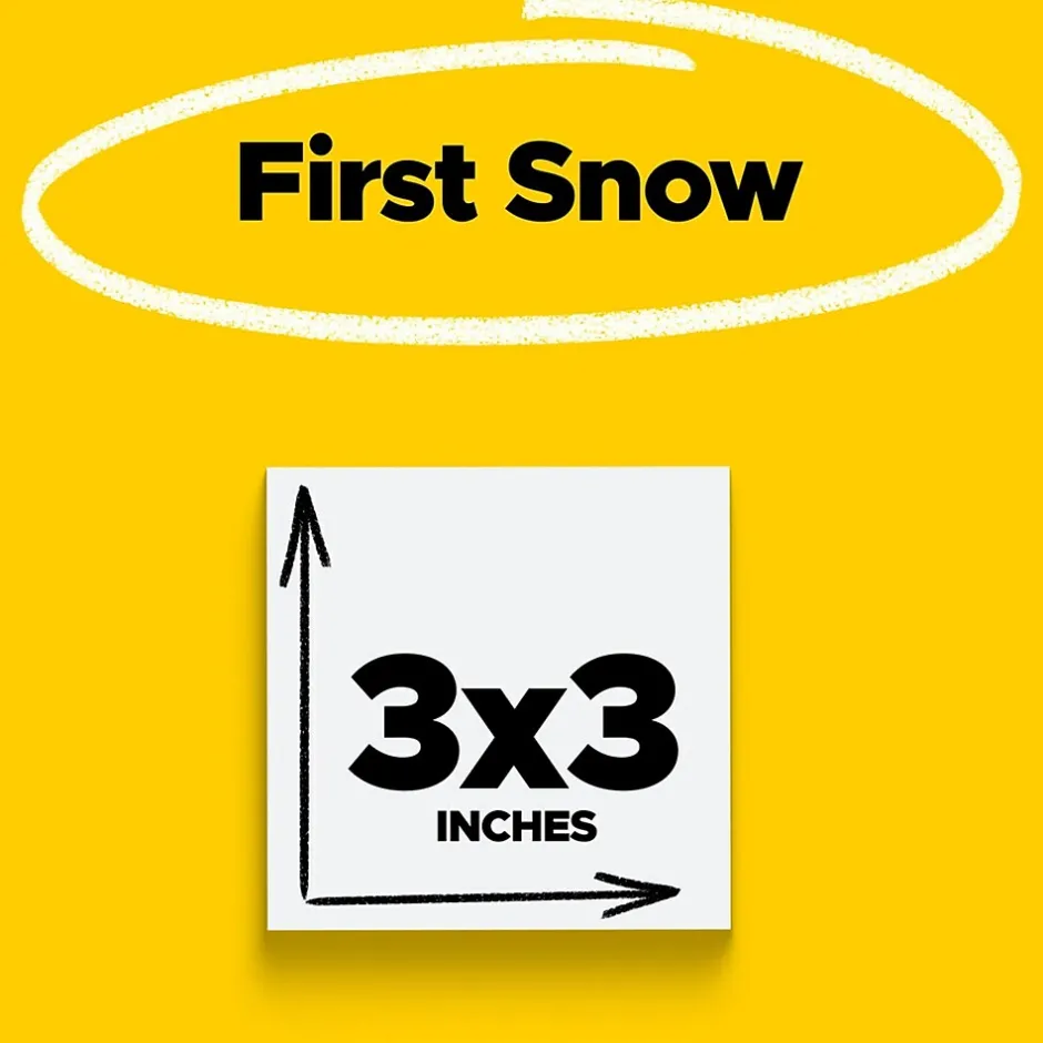 Post-it Super Sticky Notes feature 2x the sticking power. Use 3 in. x 3 in. size for notes or reminders on doors, windows or walls. Unique adhesive reliably sticks and re-sticks so your message can stay front and center. Great for creating mural art on walls or windows. Post-it Super Sticky Notes are recyclable and the paper in Post-it Super Sticky Notes is sourced from certified, renewable and responsibly managed forests. 5 Pads/Pack, 90 Sheets/Pad.