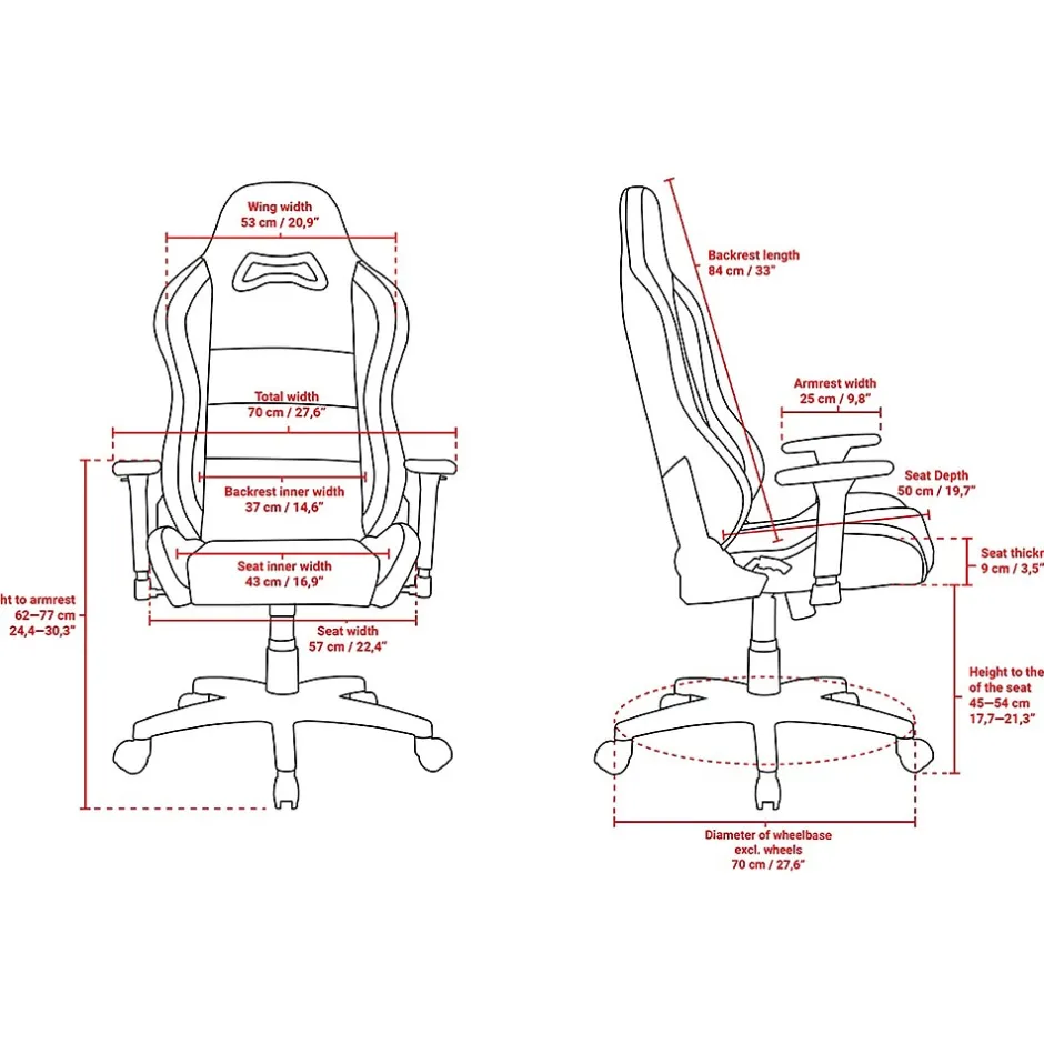 - Seat dimensions: 17.7″-21.3″H x 22.4″W x 19.7″D