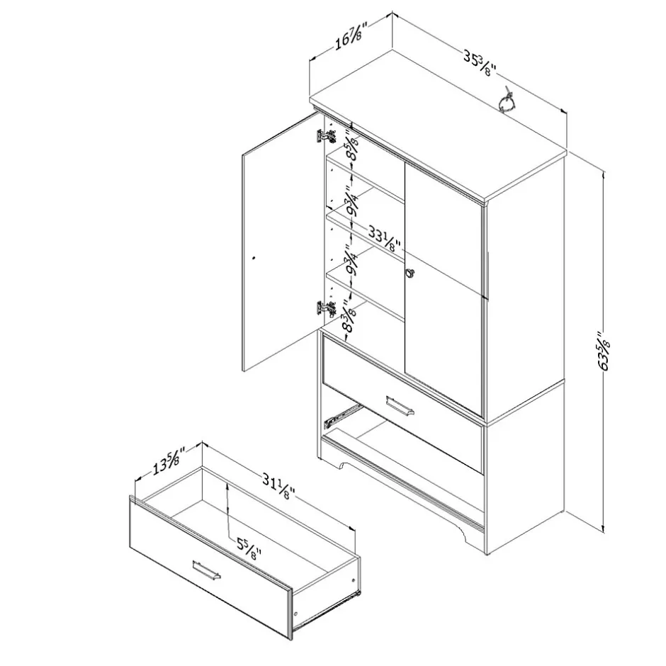 For maximum storage space, make this attractive wardrobe a part of your home⦠and jazz up your decor! This large, versatile piece will work well in any room in your home. And for even more storage space, add some South Shore felt baskets!