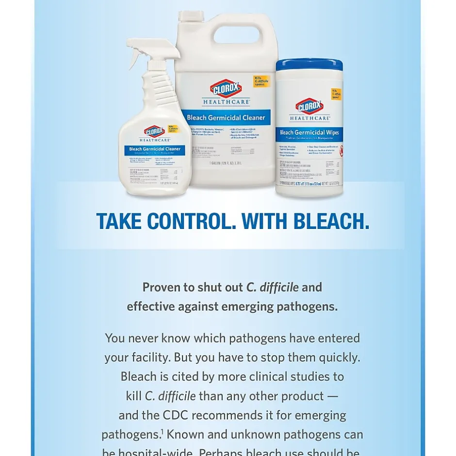 Hospital-grade disinfectant wipes & One-step, ready-to-use disinfectants with a 1 to 10 bleach dilution