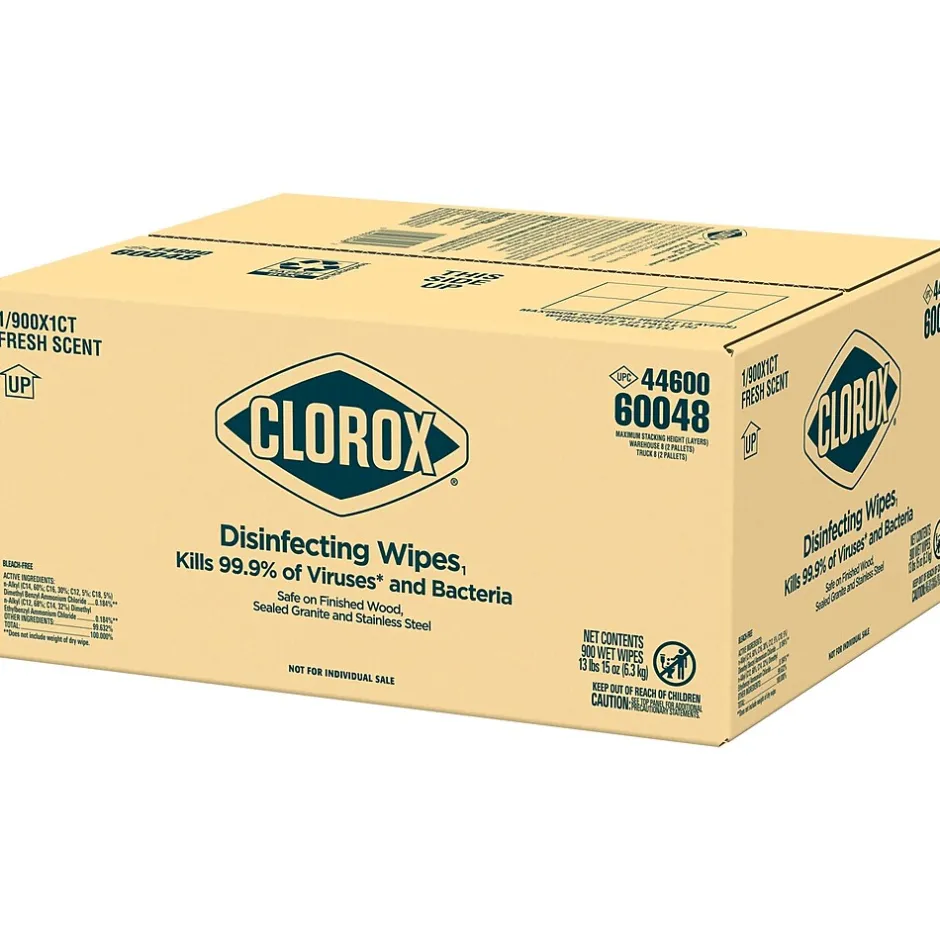 Clorox® Disinfecting Wipes1 To Go clean, disinfect and remove allergens* for 5x cleaning power* and leave a clean fresh scent. Take disinfecting on the go — in your car, purse, gym bag, carry-on or desk drawer —with these Clorox® wipes that kill 99.9% of viruses* and bacteria, including COVID-19 virus*, staph, E. coli, MRSA, salmonella, strep and Kleb. These travel packs of disposable wipes remove common allergens*, clean messes and kill germs* on surfaces like shopping carts, airplane tray tables , public bathroom surfaces, cell phones, gym equipment and more. They can even prevent the growth of odor-causing bacteria* for up to 24 hours. These bleach-free wipes are safe to use on finished wood, sealed granite and stainless steel. Disinfecting Wipes are also great on non-food-contact surfaces in the home, office, classroom, pet area, dorm and locker room. *Removes tough stains, cuts through grease, deodorizes, removes allergens (including pet dander, dust mite matter, pollen particles and grass) and removes soap scum. Kills SARS-CoV-2 on hard, nonporous surfaces. Kills human Coronavirus, Influenza A2 Virus, Pseudomonas aeruginosa, Salmonella enterica Staphylococcus Aureus. Kills odor-causing bacteria on non-food contact surfaces. Allow product to air dry. Use as directed.