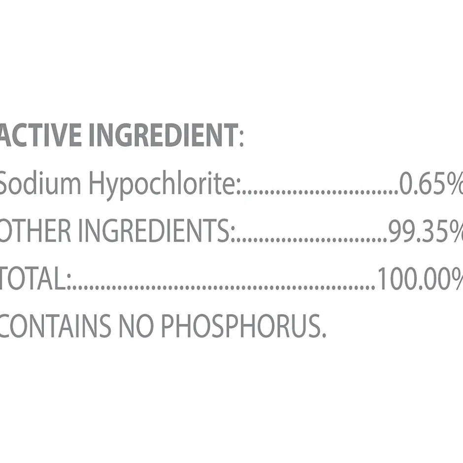 - Ingredients: Active Ingredient: Sodium hypochlorite 0.65%, other ingredients:99.35%