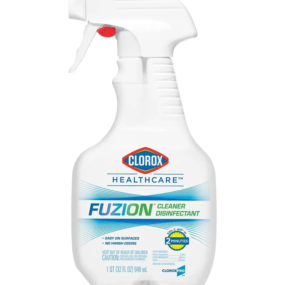 - FUZION CLEANER: Clorox Healthcare® Fuzion® Cleaner Disinfectant is made with revolutionary hypochlorous acid bleach technology that is fast acting and easy on surfaces; Package may vary