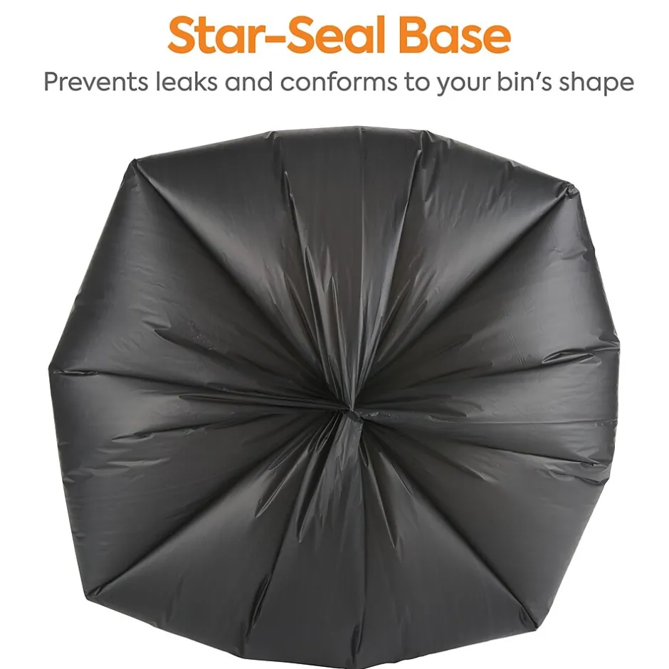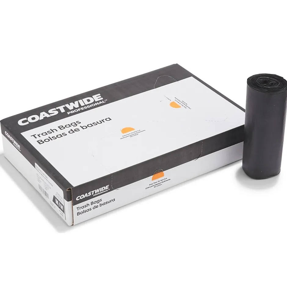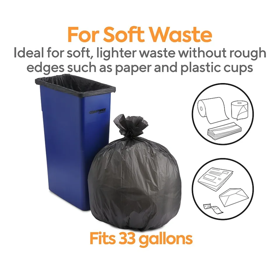 Take care of the environment while reducing messes with these trash bags. Made with high-density polyethylene for extra durability and hold, these bags are built to hold up to 33 gallons, which is perfect for holding large amounts of everyday office waste. The star-sealed construction of these Coastwide Professional™ trash bags allows transportation of refuse without causing a mess and helps prevent leaks.