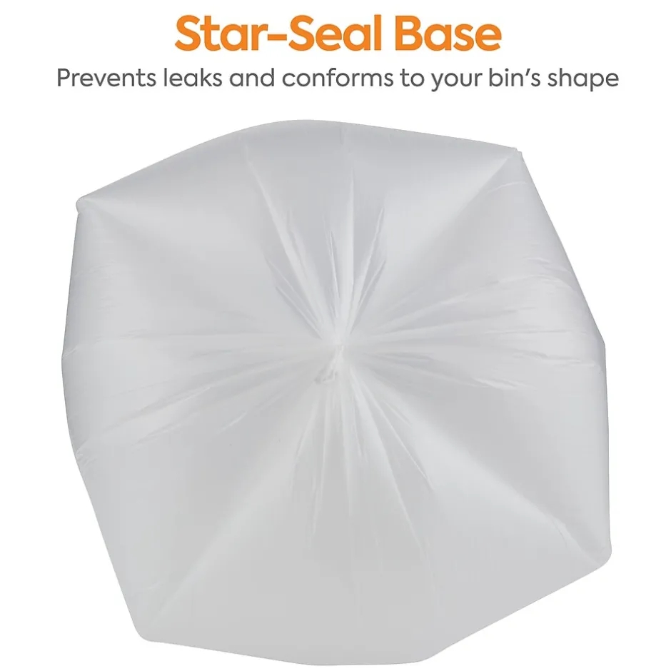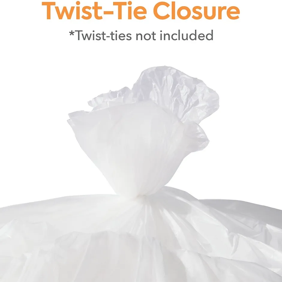 Practice responsible waste management with these medium-strength transparent trash bags. This carton of 250 comes in 25 pieces per 10 rolls for easy distribution, and the 0.47-mil thickness offers a higher load capacity. These Coastwide Professional™ natural high-density trash bags fit recycling bins with a capacity of 40-45 gallons for use in busy commercial kitchens, office buildings and public areas.