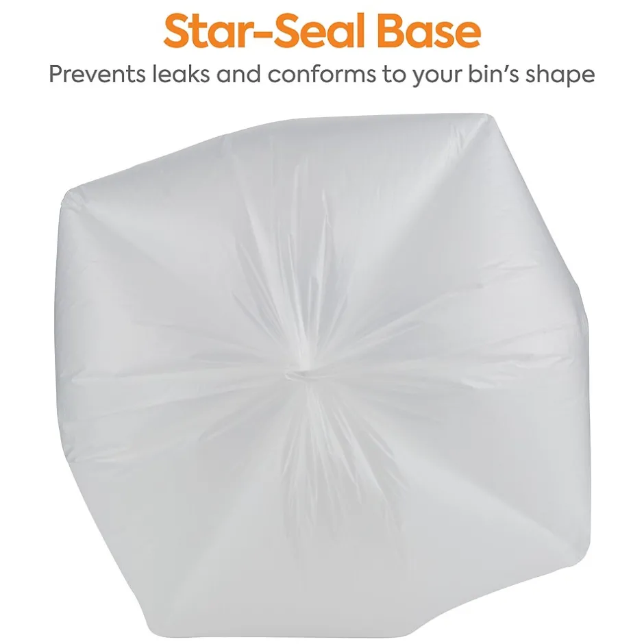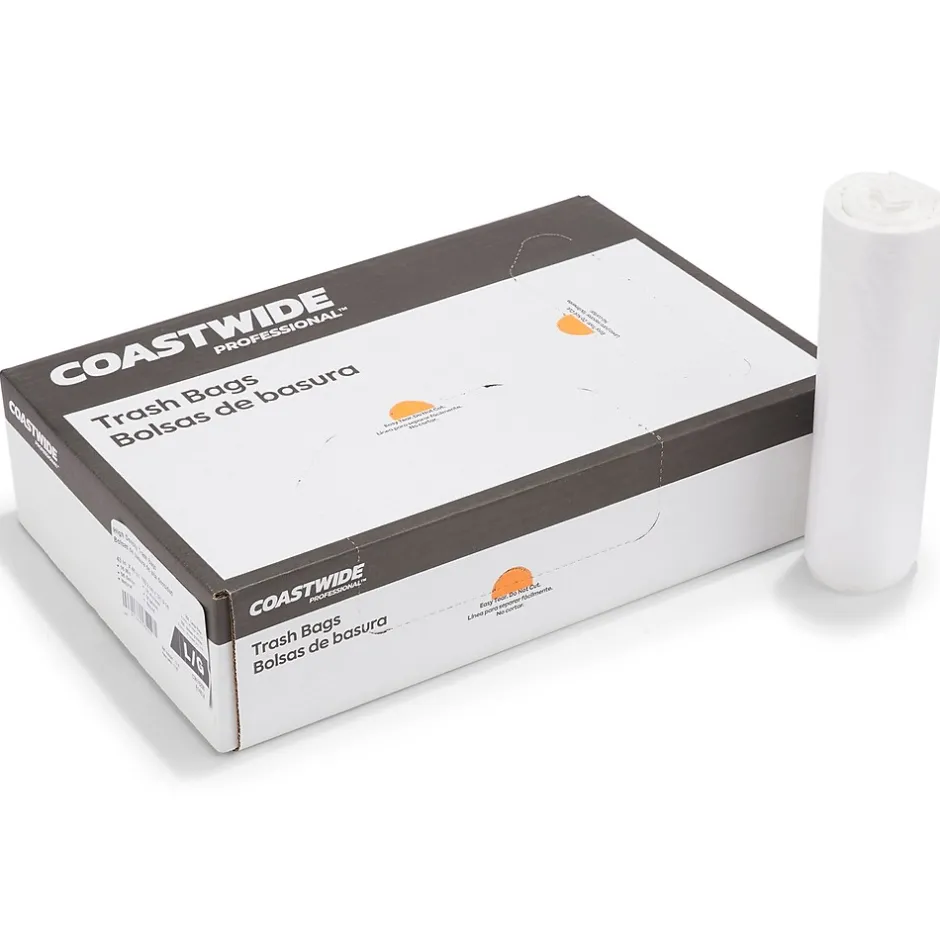 Keep your garbage cans spotless with these extra-heavy trash bags. The star-sealed bottom distributes weight evenly to resist leaks, and the high-density plastic offers good lifting strength. Boasting a 50 to 56-gallon capacity, these Coastwide Professional™ high-density trash bags provide plenty of room for garbage, and are natural to provide a view of the contents, helping avoid theft.
