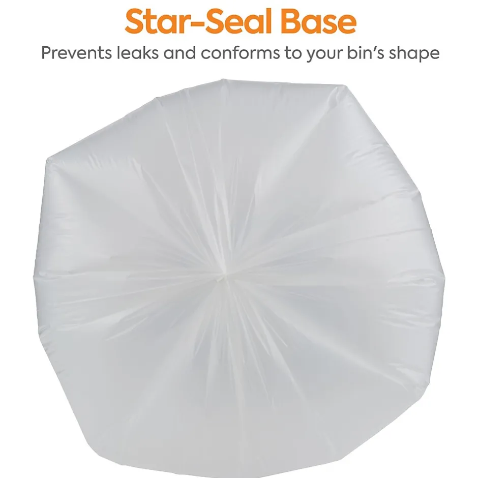 Prevent theft and accidental disposal with these trash bags. The low-density polyethylene material offers lasting durability and lets you dispose of heavy or sharp items without stretching or tearing. A transparent design makes identifying contents easy, which is ideal for preventing theft. Boasting a capacity of 55 to 60 gallons, these Coastwide Professional™ clear low-density trash bags fit easily in large receptacles and provide ample space for disposing of waste.