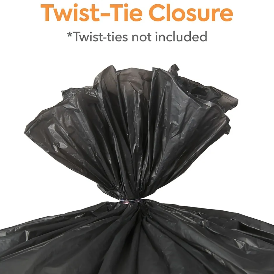 Maintain a garbage-free workplace with these trash bags. The 54 to 60 gallon size fits in large trash receptacles and provides plenty of space for garbage, while the super heavy strength polyethylene construction holds heavy items. These Coastwide Professional™ high-density trash bags are made from black material that conceals contents from prying eyes.