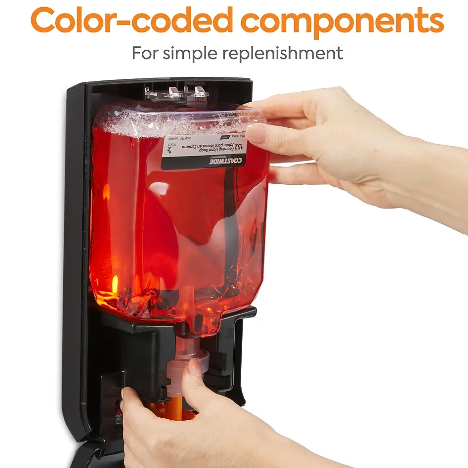 Make it easy for maintenance staff to reload dispensers with the color-coded labels on this foaming hand soap. This 2-pack of Coastwide Professionalâ„¢ J-Series foam hand soap is compatible with both automatic and manual J-Series dispensers for a precise fit. This foam hand soap washes away dirt with effective results and the tropical scent provides a pleasant atmosphere.