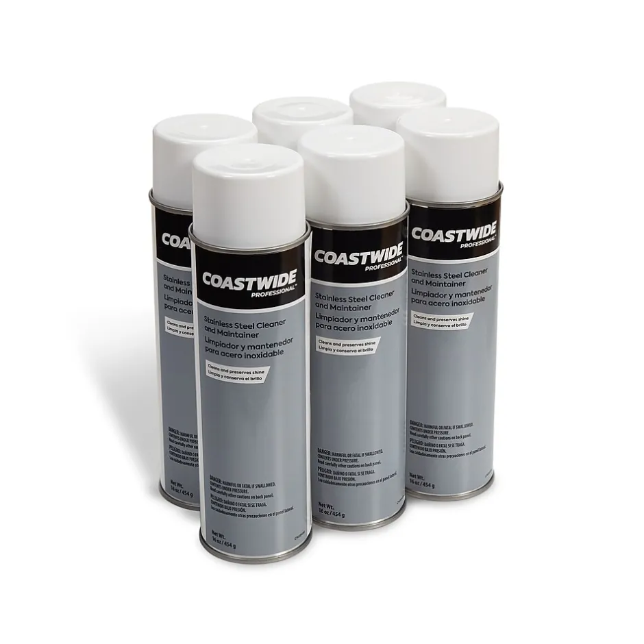 Stock up on office cleaning supplies with this stainless steel cleaner and maintainer in a handheld can. The water-based VOC-compliant formulation helps you restore the shine on stainless steel handles, bars, and various other surfaces. Featuring a color-coded label system, this canned Coastwide Professional handheld stainless steel cleaner and maintainer lets your cleaning staff easily identify the product in the supply cabinet.