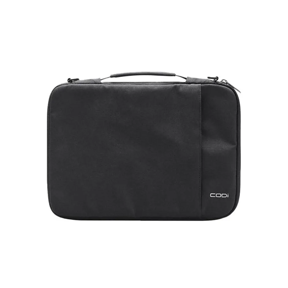 Protect your Chromebook device with the Aegis Chromebook Sleeve from CODi. Our durable and water-resistant cases deliver superior protection. Wear and tear? Not with these. Engineered and designed with durable 1680 Polyester PU PVC, your Chromebook is sure to survive all bumps and scratches. The built-in go-handle makes it easy to pick up and get moving in any environment. The front zipper pocket can store your valuables such as your charging cables, apple pencil, and any other items like keys or cell phones. A slim design allows for comfortability and easy storage in a backpack.