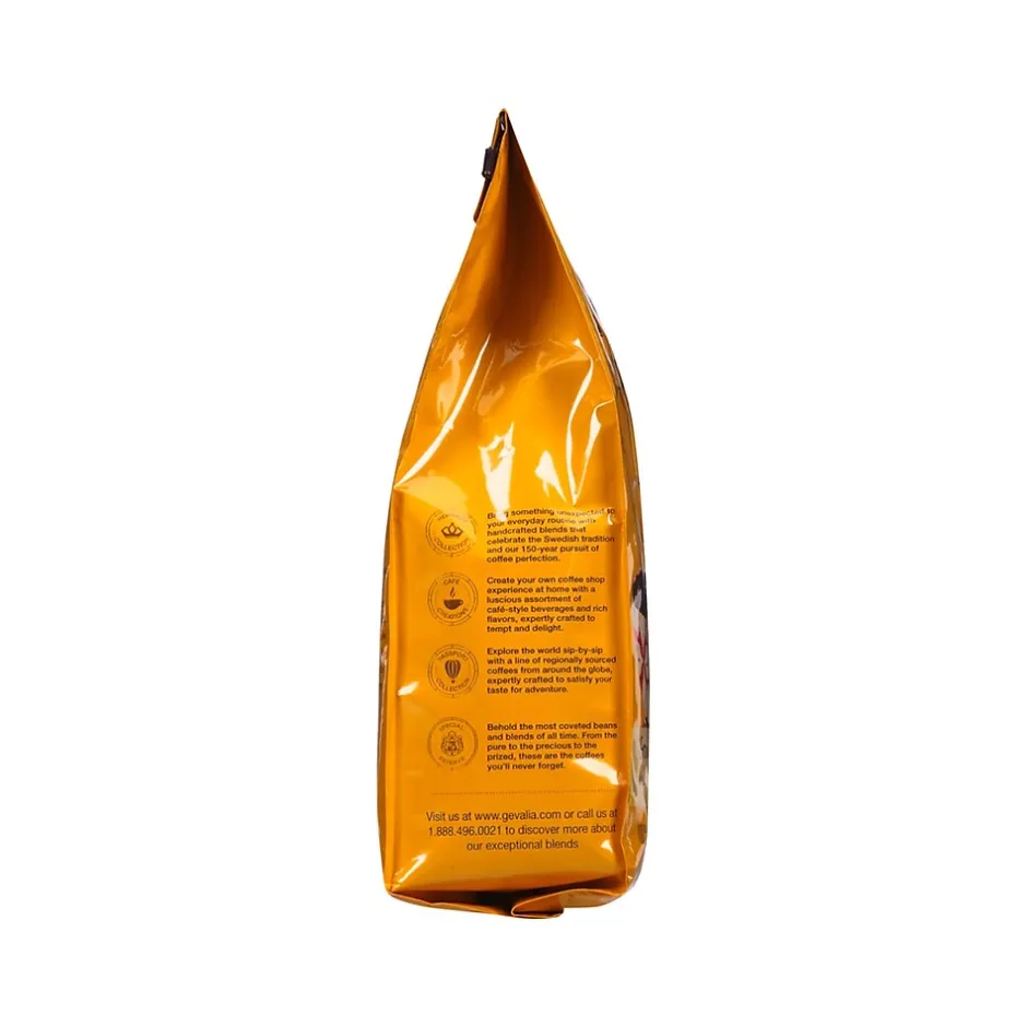 Prepare hot cups of brewed coffee for breakfast or work breaks with this house blend ground coffee. It’s packed in 12-ounce bags, ready for drip brewing, and the medium roast is delightfully smooth to the palate. Made from select beans, this Gevalia ground coffee boasts rich flavor without any bitter taste.
