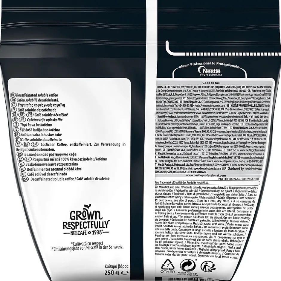 Nescafe Ristretto decaffeinated coffee is a premium blend of arabica and robusta decaffeinated beans. Create decaffeinated traditional and specialty coffees with efficiency through the Nescafe Bean-to-Cup machine or other hot beverage equipment. Pour the product directly into hot-beverage equipment, no mixing or manual preparation is needed.