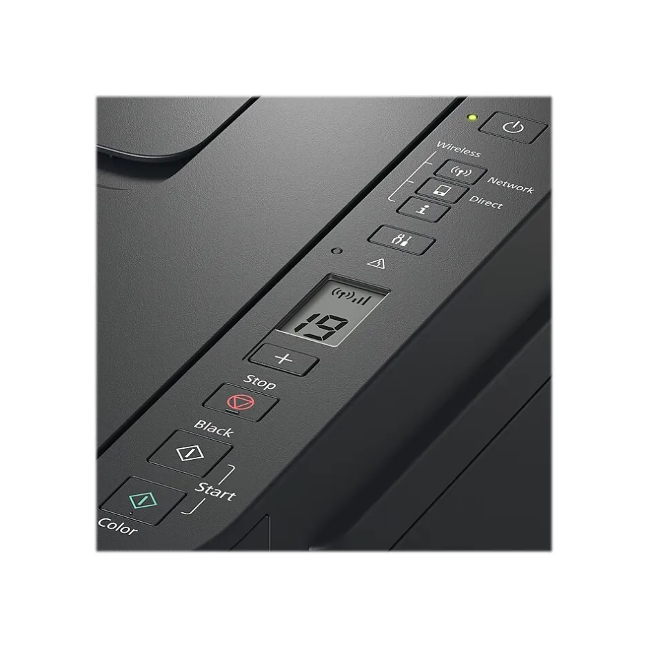Handle large printing, scanning, and copying jobs quickly with this all-in-one color inkjet printer. Featuring high-performance inkjet printing technology, this device delivers up to 8.8 impressively detailed pages per minute and boasts a MegaTank ink system that produces up to 7,000 pages before needing to be refilled. A print resolution of up to 4800 x 1200 dpi brings out the detail in documents and handouts, perfect for making a good impression on prospective clients with the professional quality of printed presentations. The built-in flatbed scanner captures business records in sharp detail, while the built-in copier makes it easy to accurately replicate important documents. Featuring integrated Wi-Fi connectivity, this printer lets users queue up jobs remotely and offers convenient mobile printing. This Canon PIXMA MegaTank printer easily handles envelopes, photo paper, and a variety of paper sizes.