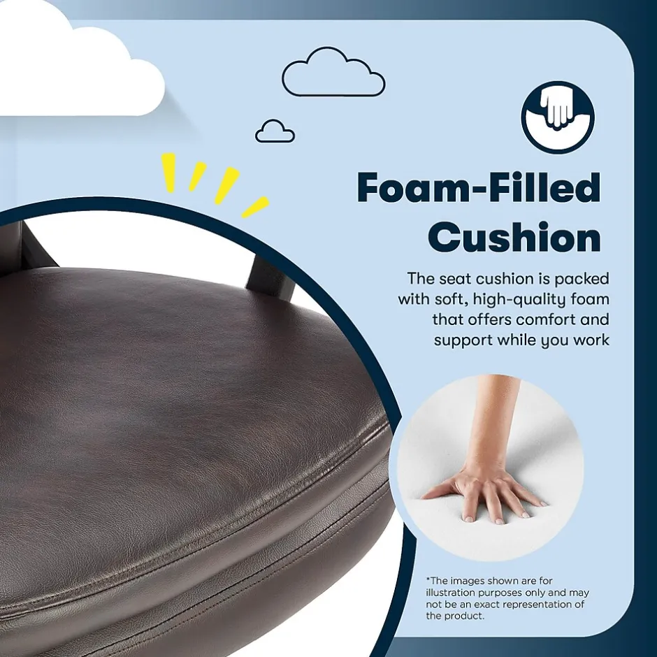 The better you sit, the better you’ll feel. Whether for work, play, or any other activity that has you sitting in our chairs, we believe comfort is everything. We know it’s a big responsibility and take it seriously, just as we do with our mattresses. With over 15 years of making chairs and innovating with designs, materials, and technology, Serta knows what it takes to give you a comfortable sit. Unwind, recharge, and conquer your workday with the Serta Comfort Modern Executive Office Chair. Featuring plush mid-back support, clean lines, luxurious channel-tufting and sculpted arms, this chair will elevate any space. A semi-plush, double-layer cushion seat with generously padded back and armrests provides ample lumbar support and will help you maintain a positive ergonomic posture while surrounding you in comfort. Thick non-recycled Serta quality foam is upholstered in a soft to touch breathable bonded leather to keep you cool during extended sitting times. Available in Black, Brown, Gray, or Cognac with matte black components. A 360º swivel metal base gives you mobility throughout the day and handles weight up to 275 lbs. Plus, the double-wheel casters ensure smooth gliding over rugs and carpet floors so you can scoot around your workspace with ease. Finding your ideal seated position is a breeze with the convenient seat-side lever. Simply adjust the height to perfectly match your stature and desk setup for a personalized fit. A perfect workday companion that adapts to your needs, the Serta Comfort Modern is made for productivity and well-being whether you’re tackling the day from a corner office or at home in the bedroom.