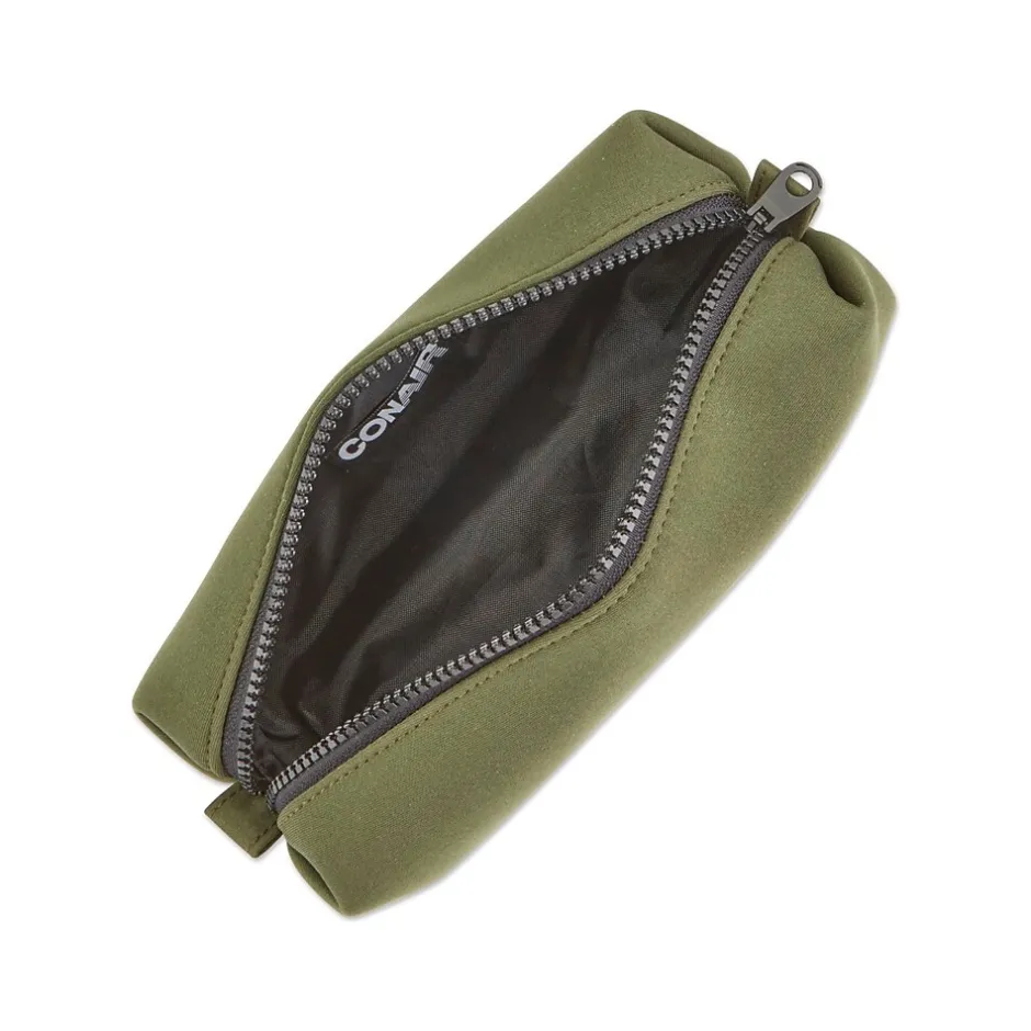 Pack light with shave and shower essentials stored neatly inside the Conair toiletry bag. All your personal care must-haves fit perfectly inside the generous storage space and stay secure with a black zipper.