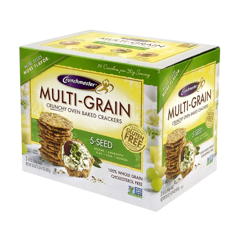 - 2- 10 oz bags per box of Crunchmaster Multi-Grain 5-Seed Oven Baked Crackers