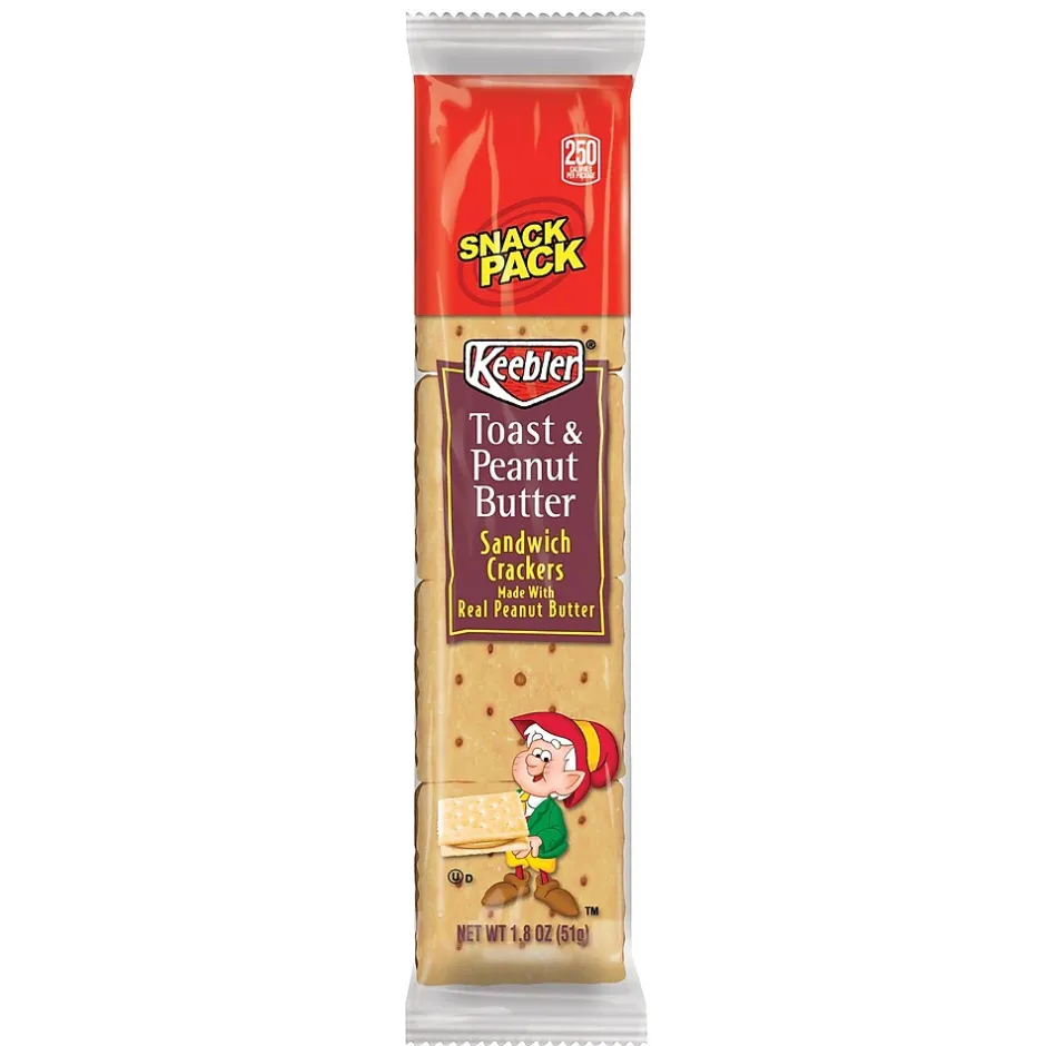 Satisfy cravings with these peanut-butter crackers. Contained in a box of 12 individually wrapped 1.8-ounce snack packs, these crackers are great for sharing at home or at the office. These Keebler toast-and peanut-butter sandwich crackers are kosher, accommodating various dietary restrictions.