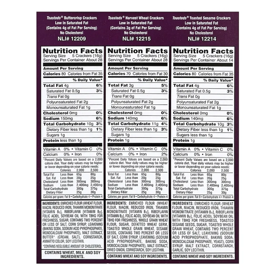 - Sesame Toasteds, Wheat Toasteds, and Buttercrisp Toasteds