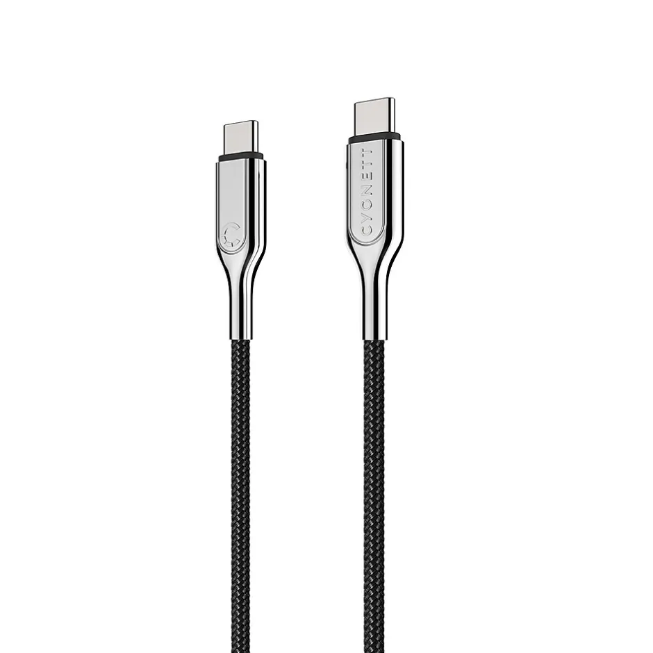 The 3 ft. Cygnett Armored USB-C to USB-C Cable supports higher levels of power, up to 5 amps/100 watts of turbo charging, so you can power-up your USB-C laptop, tablet, or smartphone at breakneck speed. It allows you to experience up 480 Mbps transfer speeds so you can quickly sync your photos, music, and data to your existing USB-C enabled device. Elongated cable connectors forged from a metallic alloy provide a refined aesthetic, strength, durability and superior scratch resistance. The robust cable design the exterior double braiding allows the cable to resist abrasion while maintaining flexibility for ease of use. The cable connectors forged from a metallic alloy provide a refined aesthetic and superior scratch resistance.