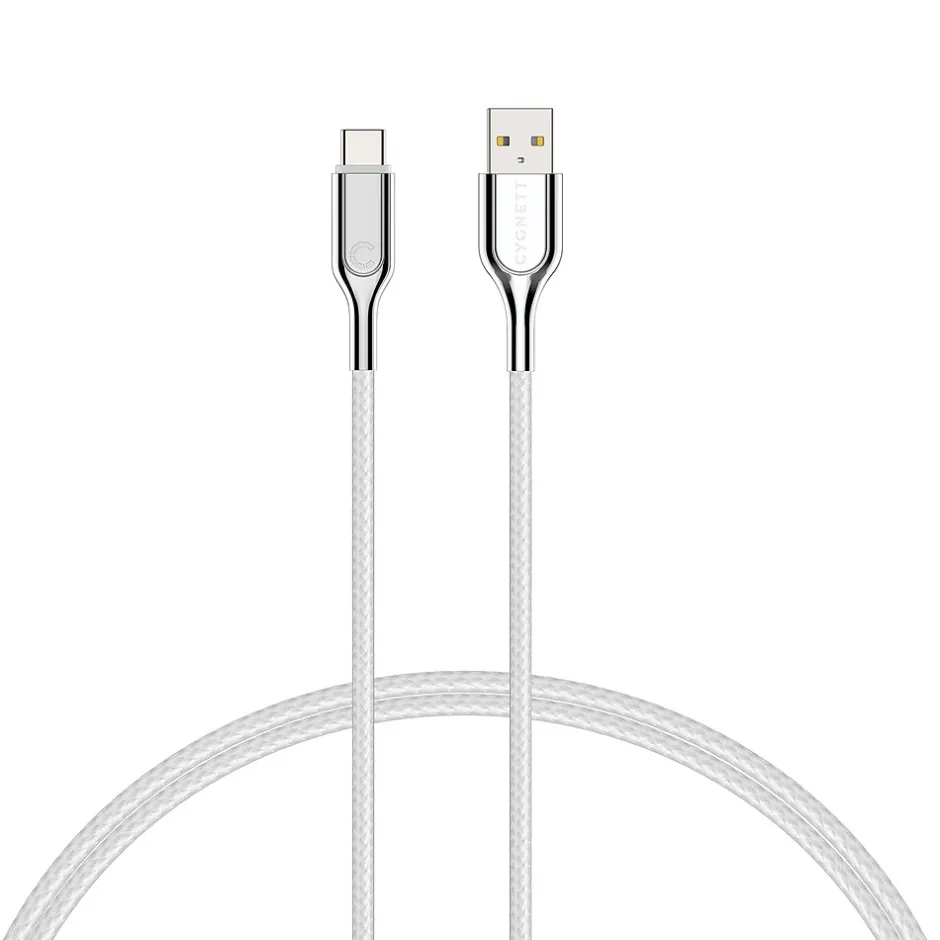 Afraid of running out of battery life? The White 3 ft. Cygnett Armored 2.0 USB-C to USB-A Cable supports 3 amp/60 watt fast charging, ensuring your USB-C smartphone or tablet will be powered-up in no time. It allows you to experience up 480 Mbps transfer speeds so you can quickly sync your photos, music, and data to your existing USB-C enabled device. Elongated cable connectors forged from a metallic alloy provide a refined aesthetic, strength, durability and superior scratch resistance. The robust cable design the exterior double braiding allows the cable to resist abrasion while maintaining flexibility for ease of use. The cable connectors forged from a metallic alloy provide a refined aesthetic and superior scratch resistance.