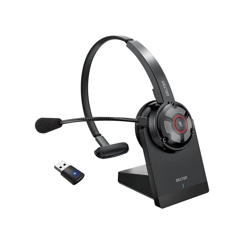 The Delton 50X Pro wireless Bluetooth headset has been redesigned with your needs in mind. Engineers listened to your feedback and designed a cushioned, adjustable, wireless Bluetooth headset with memory foam ear pads, intuitive controls, extremely long-lasting battery, convenient charging dock, and all the features needed to get the job done. The included auto-pairing USB dongle makes setup super simple: just plug in, turn on, and you’re ready to go!