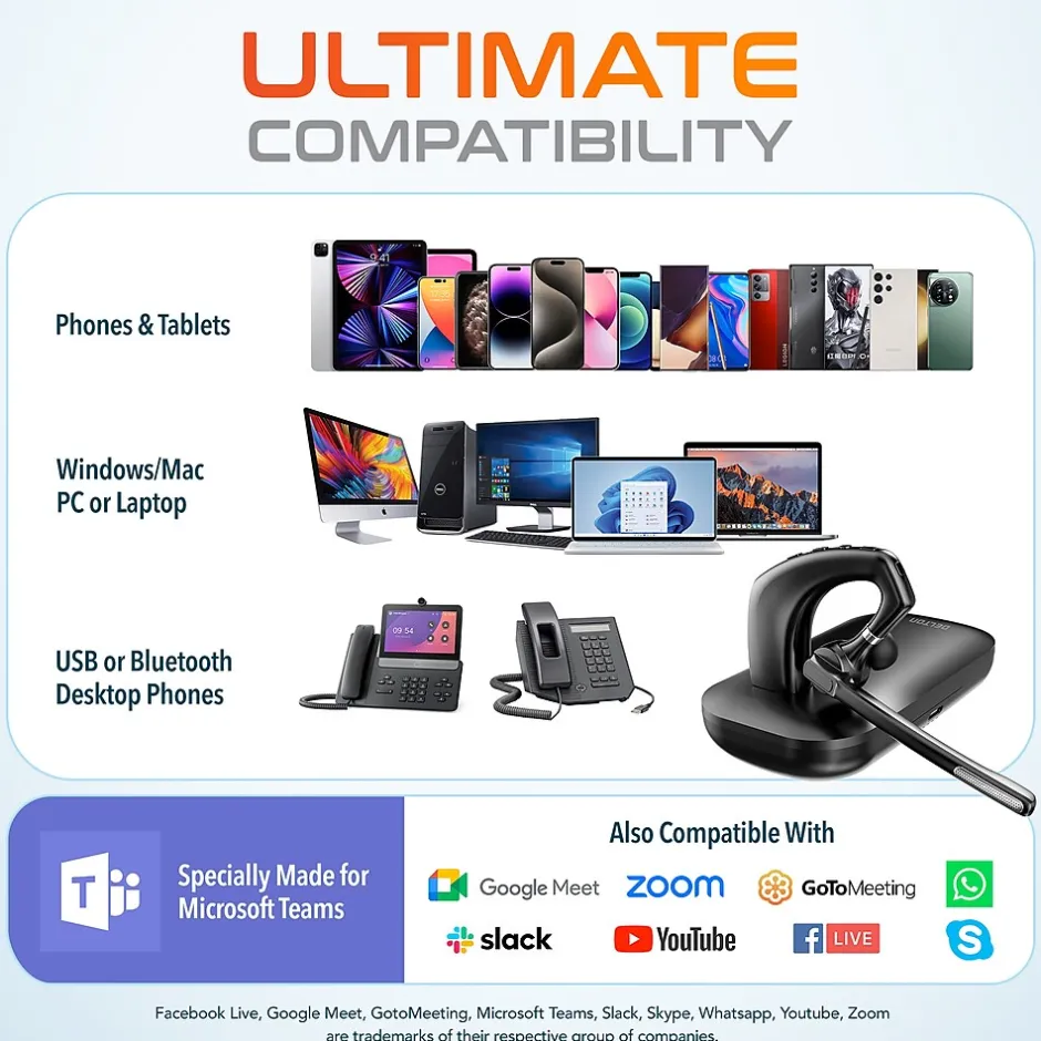 - Noise-canceling computer wireless headset compatible with MS Teams and great for working from home or the office
