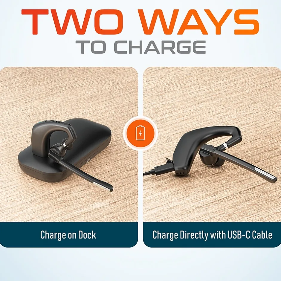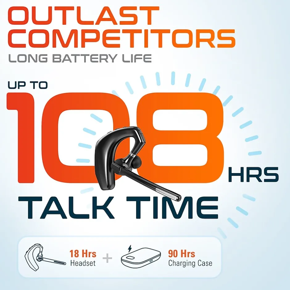 - Ultralight headset packs a powerful battery that offers up to 108 hours of talk time on a full charge in both the headset and charging case