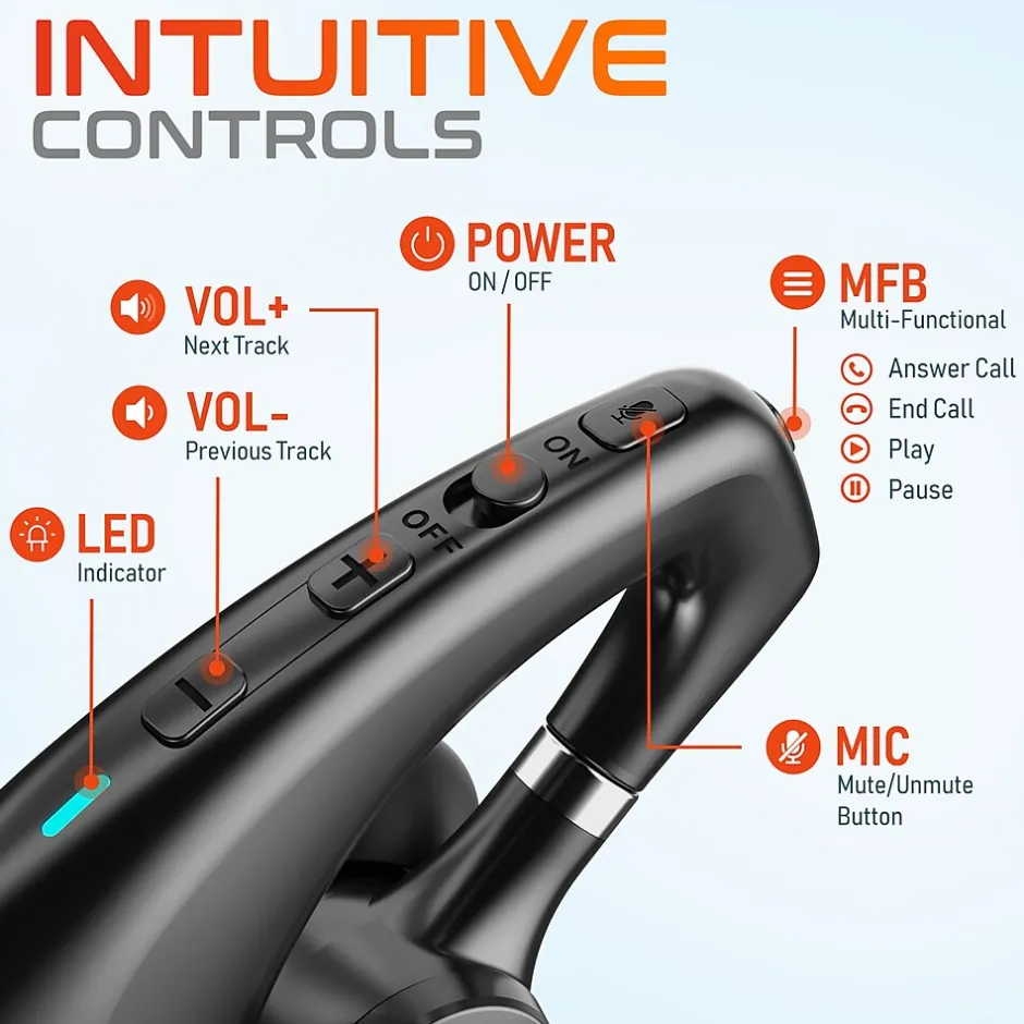 - Ergonomically designed with soft ear cushions, a rotatable boom mic that will work in either the left or right ear, and intuitive controls; comes in black